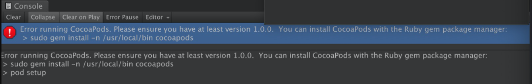 Error running CocoaPods. Please ensure you have at least version 1.0.0. You can install CocoaPods with the Ruby gem package mana