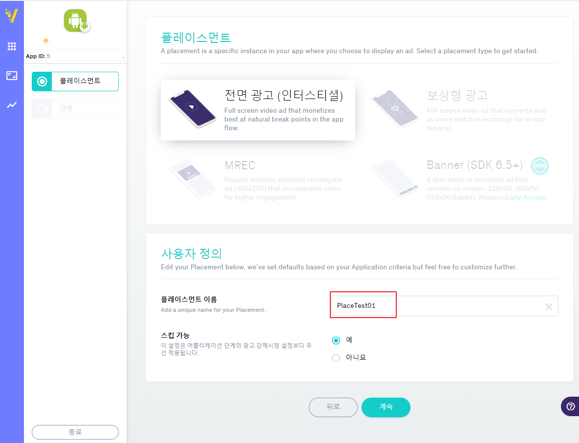 그리고 아래와 같이 플레이스먼트 ID도 생성해야한다.